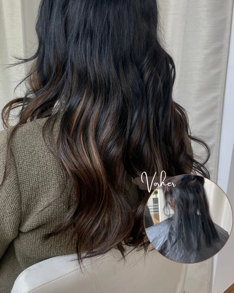 über nur durch Extensions erzielte farbliche Akzentuierung (Highlights oder Balayage Effekt),